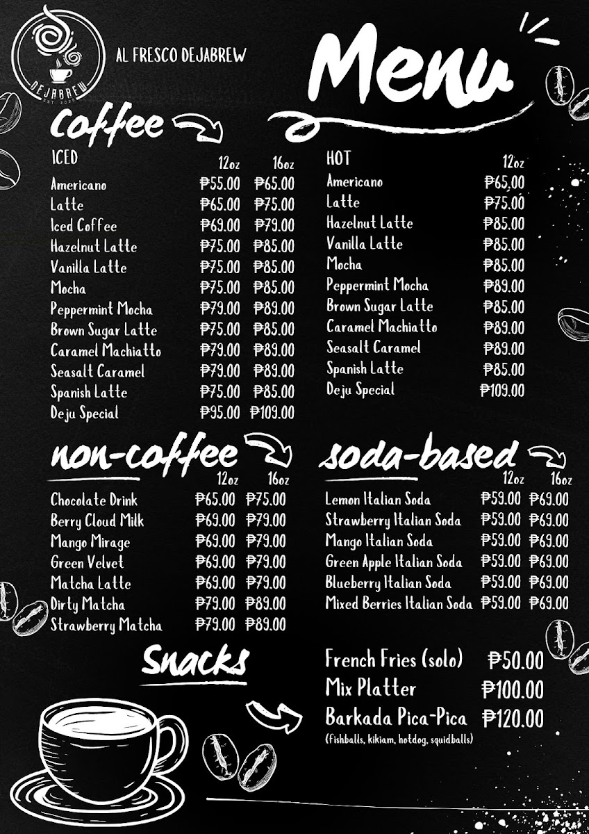 Al Fresco DejaBrew Cafe prides itself on its diverse menu, catering to both the discerning coffee lover and those seeking a hearty meal. Start your day with their Sausage Sunrise or Bacon Bliss, each featuring fluffy rice paired perfectly with rich, flavorful sausage or crispy bacon and a perfectly cooked egg—all for a budget-friendly price of just ₱89.00. For those who prefer something lighter, the Spam Supreme and HamTastic Plate offer savory alternatives at an equally enticing rate of ₱79.00.